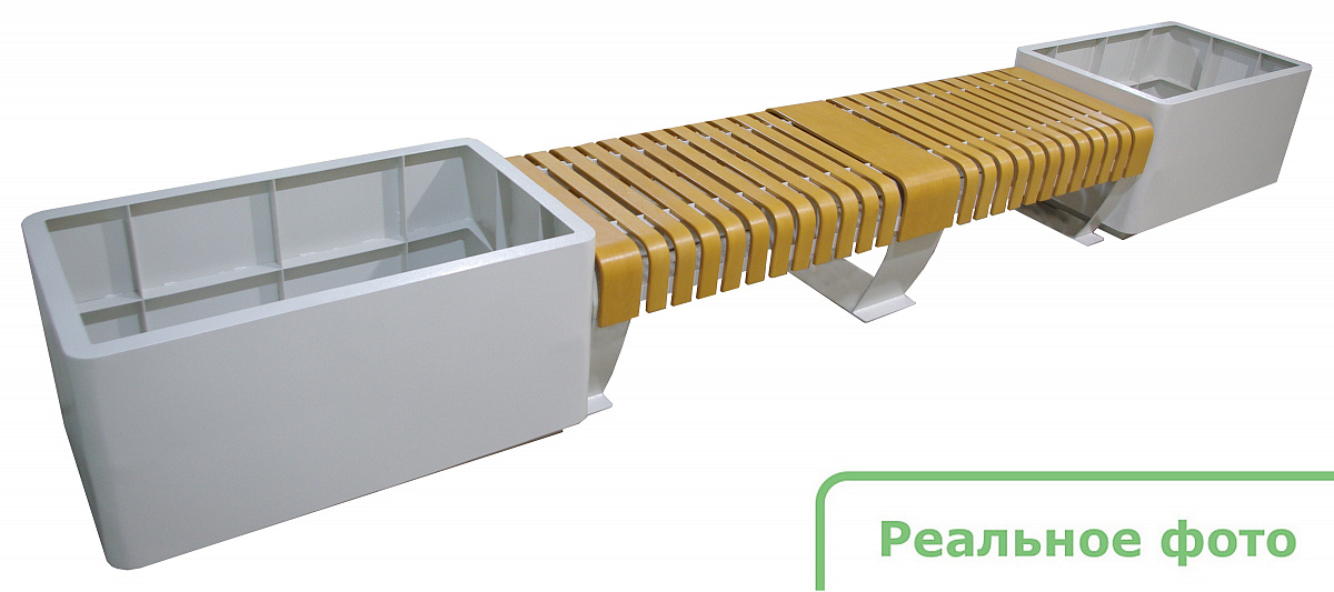 Основание скамейки и вазоны - оцинкованная стальная конструкция с порошковым лакокрасочным покрытием.