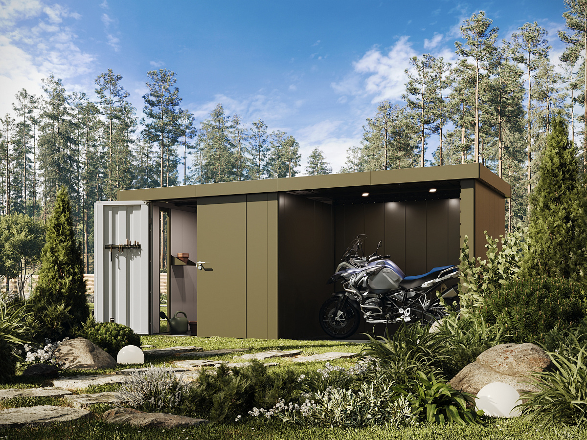 Сборный металлический сарай серии Neo размером 6*2 м – самый большой и вместительный представитель серии сараев Neo. Благодаря своему дизайну, сарай(хозблок) Neo прекрасно интегрируется в любой стиль вашего сада будь он традиционным или современным. Изящный с гладкой поверхностью стен и элегантной панелью с окном сарай Neo не только украсит вашу загородную жизнь, но станет очень практичным решением для хранения всего садового инвентаря и инструментов, необходимого сырья для разведения костра, работы камина или печей, хранения садовой техники и техники выходного дня. Благодаря приставному крылу, вы получаете дополнительное пространство для хранения габаритных предметов загородной жизни – таких, как мотоцикл, мопед, квадроцикл, гидроцикл и т.д.